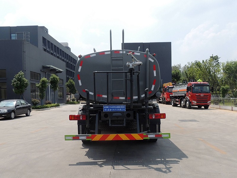 2.常配:前沖、后灑、側噴、后置工作臺,平臺上安裝綠化灑水高壓炮(炮可360度旋轉,炮射程形狀可調成直沖狀、大雨、中雨、小雨、毛毛雨,霧狀等),自流閥及消防接頭各1個,水管3米2根, 8T以上花灑2個,濾網,球閥,水位計,配有大功率專用灑水泵,泵可自吸自排,可將池塘的水直接吸入罐體內,也可從城市街道的消防栓上連接注水,吸入罐體內。罐體倉內1.5米一道隔板,具有防波防蕩作用。