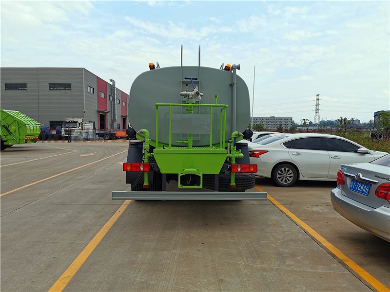 罐體采用標(biāo)準(zhǔn)Q235碳鋼制作,罐體自動(dòng)焊,裝水15噸,配大功率專用灑水泵,可自吸自排,前沖后灑,側(cè)噴,高位花灑,主管道加粗,大通徑球閥,直通球閥式消防接口,帶后工作沖孔平臺(tái),帶高壓炮。(可選裝大平臺(tái),可加裝30米射風(fēng)送式霧炮機(jī),可加裝前置全自動(dòng)電子高炮)。車輛環(huán)保、免征齊全,上戶無(wú)憂。