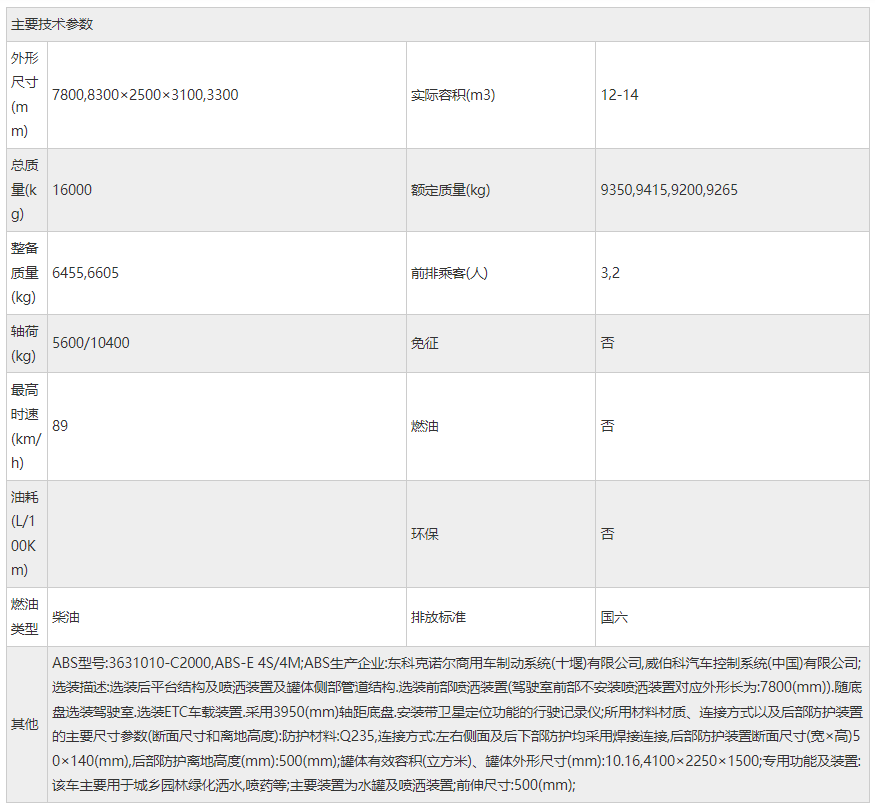 國(guó)六東風(fēng)D3灑水車12/14立方